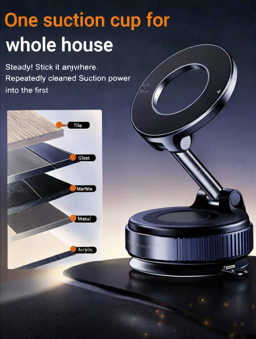 Magnetic Vacuum Suction Foldable Phone Holder (ABS Build)